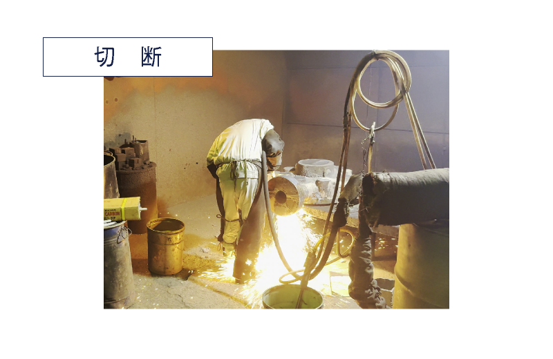 主にガス切断(アセチレン・酸素バーナー)、プラズマ切断、または機械切断を用い、粗い切断面を形成します。